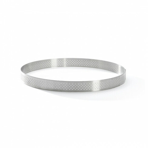 Cercle à tarte perforé rond en acier inoxydable idéal pour les tartes, tartelettes, tourtes et quiches, développé en partenariat avec l’Ecole du Grand Chocolat Valrhona.