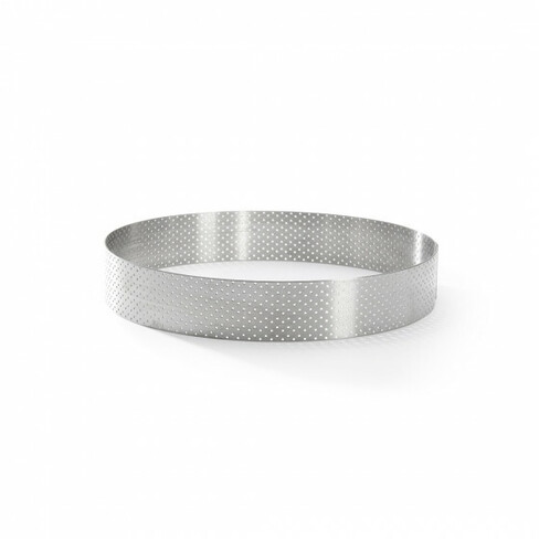 Cercle à tarte perforé rond en acier inoxydable idéal pour les tartes, tartelettes, tourtes et quiches, développé en partenariat avec l’Ecole du Grand Chocolat Valrhona.
