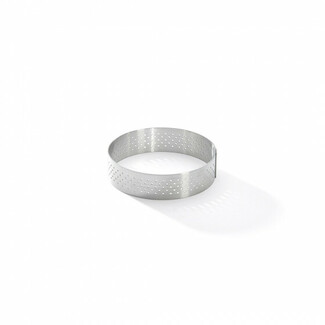Cercle à tarte perforé rond en acier inoxydable idéal pour les tartes, tartelettes, tourtes et quiches, développé en partenariat avec l’Ecole du Grand Chocolat Valrhona.
