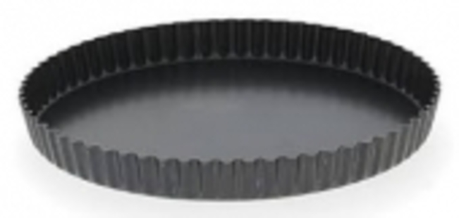 Moule à tarte cannelé en acier revêtu, bord droit et fond fixe : un design authentique.