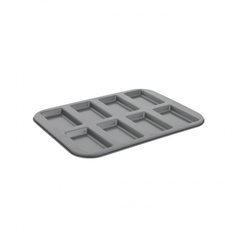 Plaques robustes en acier revêtu de 8 empreintes pour la cuisson de pâtisseries individuelles : 8 grands financiers.