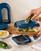Le réservoir est idéal pour recevoir et stocker les découpes de fruits et légumes. Le couvercle démontable et la lame de mandoline permettent également de découper de fines tranches. Son format compact est facile à stocker.