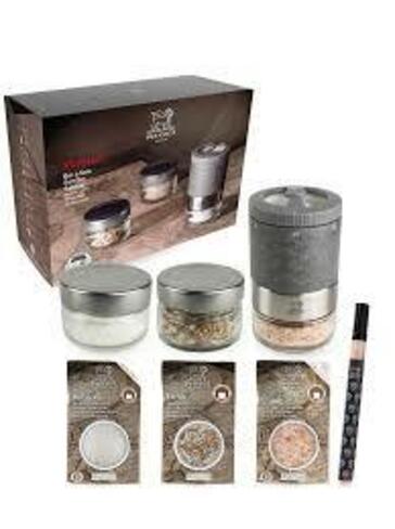 Le coffret Maestro Sel, concept innovant de Bar à Sel, renouvelle l’art de l’assaisonnement. Avec ses réservoirs interchangeables, qu'il suffit de dévisser, il passe d’un réservoir de sel à un autre d'un simple geste. Doté du mécanisme en Zircone, une innovation Peugeot, et du système de réglage précis u’Select, il permet également de jouer sur les textures du sel et d’ajuster la mouture à vos envies, du sel glace, une mouture d’une extrême finesse, au sel croquant.