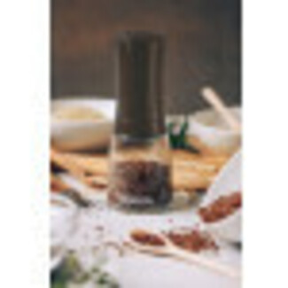 Mécanisme 100% céramique spécial pour les graines Réglage de la taille de mouture Aucune pièce en métal Aucun risque de corrosion Préserve les saveurs Taille de la mouture réglable Contenant en verre Dimension : 16 cm