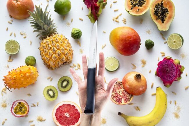 Avec une fourchette il découpe rôtis, gigots et volailles. D'une grande maniabilité il est aussi efficace pour trancher les fruits et les légumes.
