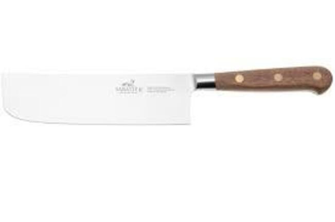 Couteau forgé Saveur Sabatier, Lame Acier inox , Manche Bois Noyer du Périgord Rivets en laiton, 100% forgé