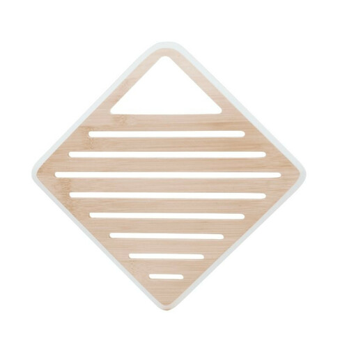 Le dessous de plat en bambou Pebbly avec son contour crème est choisi pour son esthétique élégante et coordonnée avec la vaisselle, facilitant le repérage, offrant un contraste visuel avec les plats chauds et s'harmonisant avec d'autres éléments de décoration de la cuisine