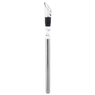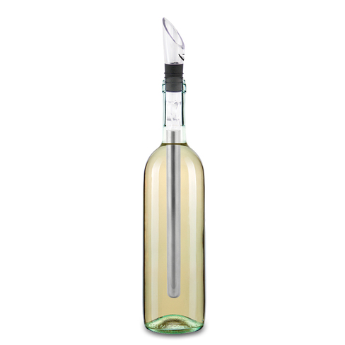 Bouchon verseur en plastique avec joint en silicone qui s'adapte à toutes les tailles de bouteille, équipé d'une tige refroidissante en acier inox qui conserve le froid jusqu'à deux heures.