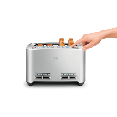 Pensé pour les amateurs de pains généreux, de bagels épais et de viennoiseries artisanales, le Smart Toast 4 tranches de Sage combine design haut de gamme et innovations exclusives. Ses 4 fentes extra-larges accueillent tous types de pains avec un abaissement automatique pour une manipulation en douceur.