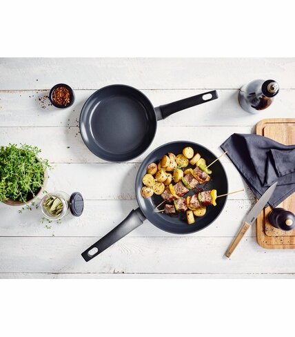 - Excellentes propriétés anti adhérentes grâce au revêtement céramique renforcé de Titanium. Pour cuisiner sainement, très peu de matière grasse est nécessaire. Entretien facile !