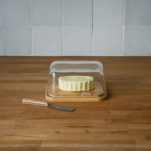 Beurrier avec couvercle en verre, matériau sain et naturel Sa base est fabriquée en bambou naturel