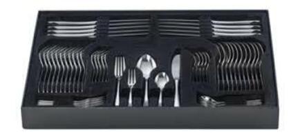 - 60 pièces, pour 12 personnes : 12 couteaux de menu, 12 fourchettes de menu, 12 cuillères de menu, 12 fourchettes à gâteau, 12 cuillères à café