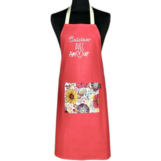Tablier de cuisine pour femme, "cuisiner avec amour" de couleur grenadine. Ce tablier de cuisine sera parfait pour toutes les femmes qui cuisinent avec beaucoup d'amour, les reines des gâteaux.