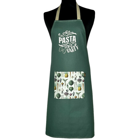 Vous avez toujours rêvé de cuisiner pour femme ou pour homme vos fameuses pâtes italiennes "al dente" faites maison ? Notre tablier de cuisine floqué "Pasta party" sur un tissu de couleur sapin a été fabriqué exprès pour vous ! Il sera utile pour ne pas tâcher vos vêtements lorsque que vous cuisinez dans votre cuisine ou avec vos enfants.