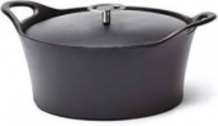 Cocotte ronde de diamètre 24cm. Fonte de fer émaillée de couleur noire avec couvercle. Contenance 3.4 litres pour 4 à 6 convives.