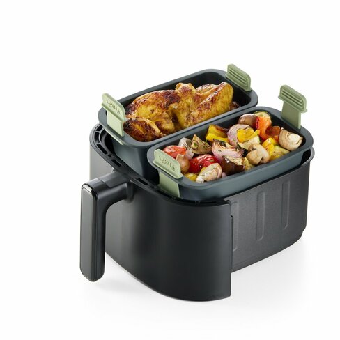 Moule pour airfryer format cake 20 x 11 cm, conçu pour une cuisson homogène dans les friteuses à air. Fabrication silicone/thermoresistant (visuel) avec bord rigide et clips amovibles pour maintien et manipulation sécurisée. Produit compact, empilable et facile à nettoyer, idéal pour élargir une gamme d'accessoires cuisson dédiés aux appareils sans huile. Valeur ajoutée: compatibilité airfryer, gain de place, entretien simple.