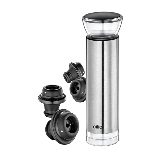 Pompe à vin + 4 bouchons INOX