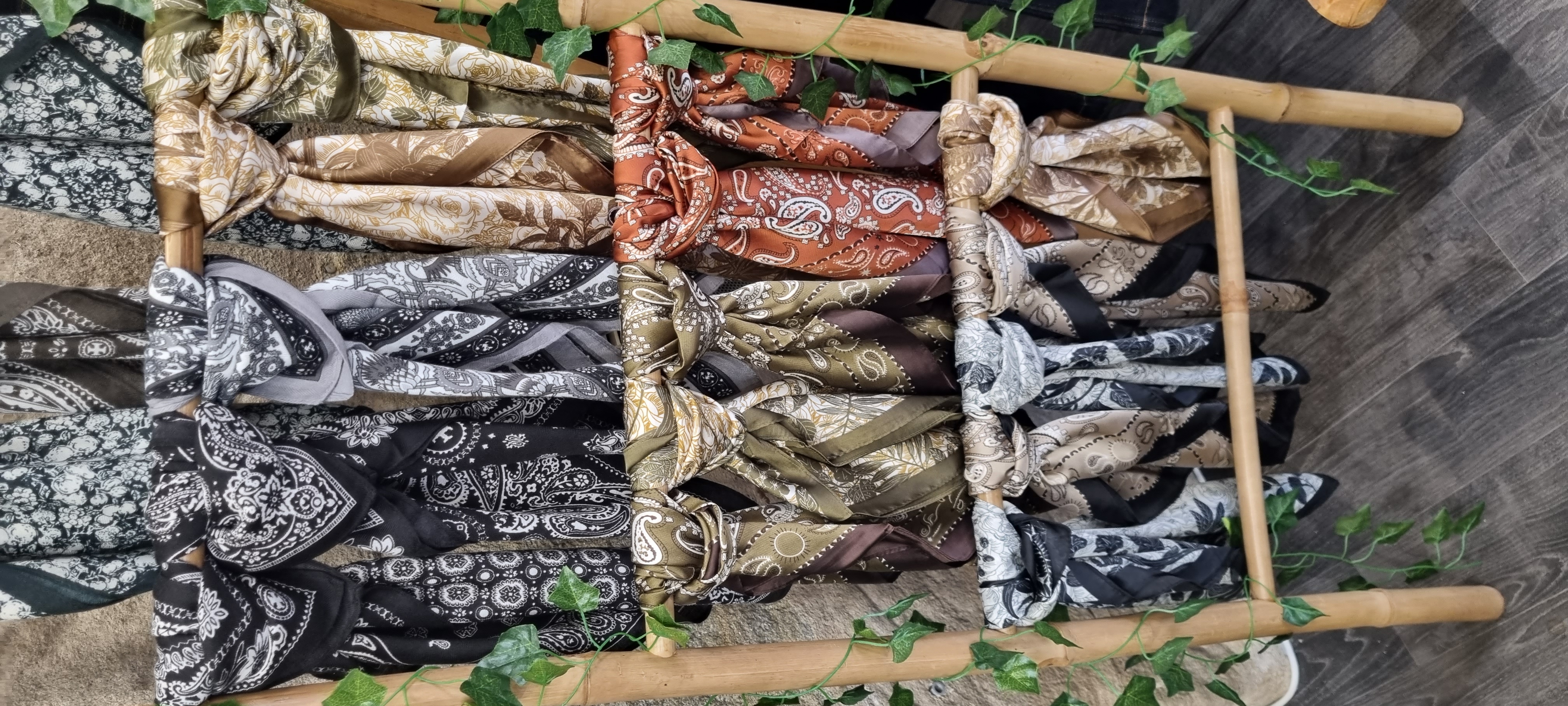 Récemment arrivés en boutique, les foulards carrés sont très tendance cette saison, se portent facilement autour du cou ou sur un pull pour apporter une touche de style tout en douceur.