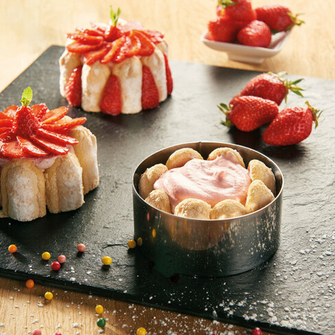 Cercle à pâtisserie rond avec des bords droits de 4.5cm de hauteur, idéal pour le montage d’entremets et le formage à froid.