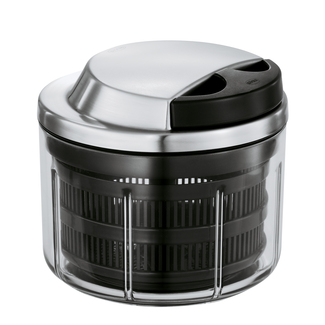 Mécanisme de coupe breveté à deux lames mobiles pour hacher herbes, fruits et légumes. Une simple traction active le mécanisme d'entraînement breveté qui fait tourner les lames sept fois. Panier intégré pour essorer les herbes. Poignée ergonomique. Fond du bol antidérapant pour plus de praticité et de sécurité. Couvercle en acier inoxydable.
