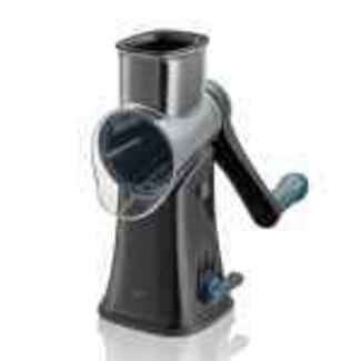 Son système de "click" innovant vous permet de changer facilement le tambour pour passer d'une râpe à l'autre en fonction de vos besoins de préparation. Elle comprend 5 râpes en acier inoxydable pour découper en juliennes, rondelles lisses et gaufrées.