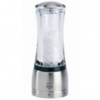 Tout en transparence, le moulin à sel Peugeot de la collection Daman s'est allégé de son axe central pour laisser pleinement apparaitre les cristaux de sels qui le compose. Son design épuré associe de manière élégante la transparence de l’acryl à l’éclat unique de l’inox. Il est doté d'un système breveté de réglage de mouture appelé u’Select qui permet de varier les saveurs en sélectionnant une taille mouture de sel parmi les 6 sélections possibles. Comme tous les moulins