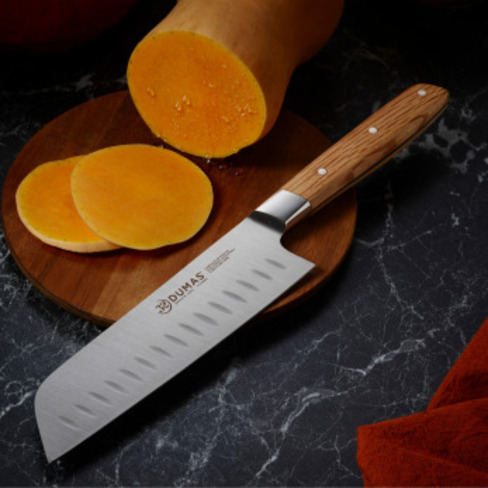 Ce couteau dont la forme est inspirée de la coutellerie japonaise, est idéal pour détailler, découper, émincer les 3 types d’aliments les plus communs : légumes, viandes et poissons.