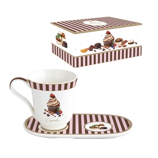 COFFRET 1 MUG 35cl AVEC PETIT PLATEAU --x--cm EN PORCELAINE SWEET MOMENTS