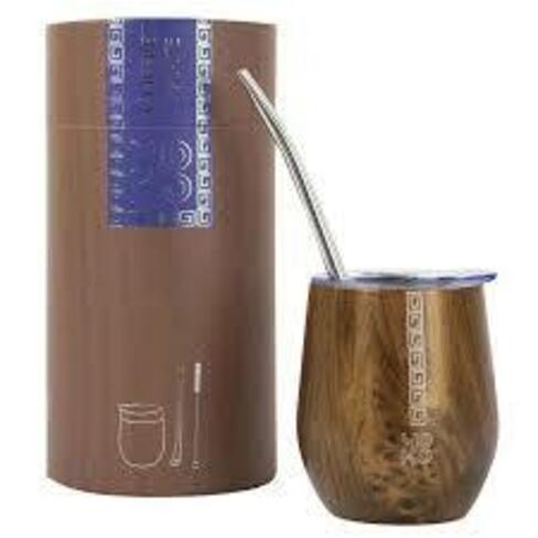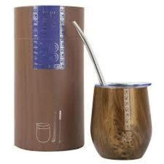 Pour le préparer sont réunis dans ce coffret : une paille filtrante (« bombilla ») ainsi qu’une tasse isotherme, à double paroi en acier inoxydable et munie