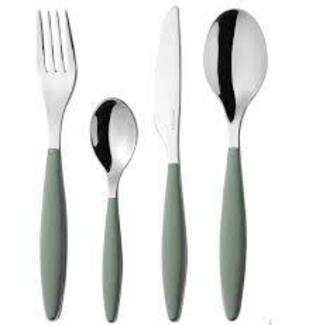 Ce couvert allie acier et plastique à la perfection. L'acier inox de qualité supérieur parcourt toute la longueur des couverts sur le manche desquels sont appliqués de précieux éléments en plastique bicolore. Ils sont conçus pour résister à des milliers de lavages au lave-vaisselle.