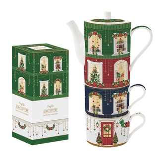 1 théière + 2 mugs empilables en porcelaine - compatible lave vaisselle & micro onde - présentation boite cadeau
