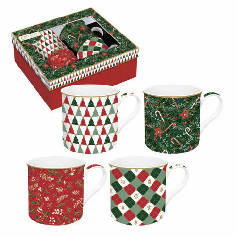 Coffret 4 mugs 30cl en porcelaine - Compatible lave vaisselle et micro onde - Coffret cadeau