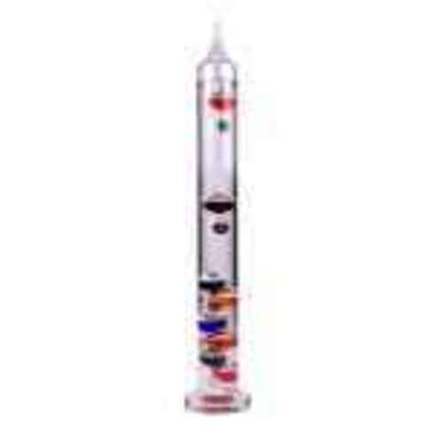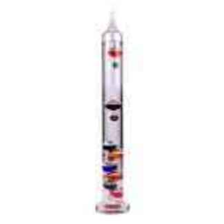 Nommé ainsi en l'honneur du célèbre physicien, ce thermomètre en verre d'une hauteur de 44 cm contient un liquide transparent et huit ampoules de verres, remplies d'un liquide coloré, qui se déplacent en fonction de la température ambiante.