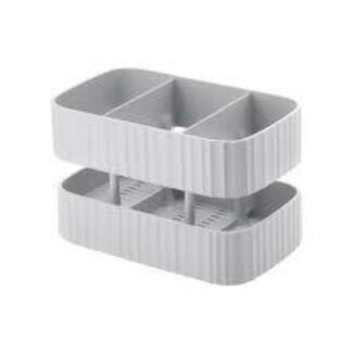 Pratique et compact, cet organisateur d’évier peut accueillir les principaux flacons de liquide vaisselle, une éponge, une brosse et un tampon à récurer. Il permet d’accrocher et de sécher l’éponge. Facile à nettoyer, il passe au lave-vaisselle et se démonte en trois pièces.