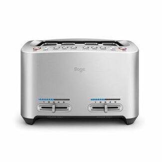 Pensé pour les amateurs de pains généreux, de bagels épais et de viennoiseries artisanales, le Smart Toast 4 tranches de Sage combine design haut de gamme et innovations exclusives. Ses 4 fentes extra-larges accueillent tous types de pains avec un abaissement automatique pour une manipulation en douceur.