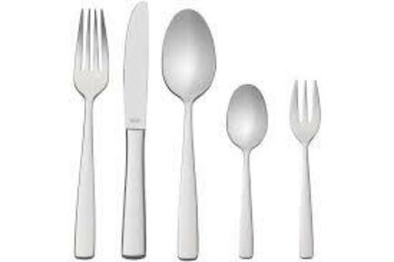 - 30 pièces, pour 6 personnes : 6 couteaux de menu, 6 fourchettes de menu, 6 cuillères de menu, 6 fourchettes à gâteau, 6 cuillères à café