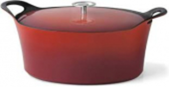 Cocotte ovale de diamètre 29cm. Fonte de fer émaillée de couleur noire avec couvercle. Contenance 3.9 litres pour 5 à 6 convives.