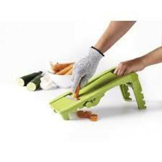 Coupez, tranchez, épluchez, hachez en toute sécurité ! La garde de votre mandoline vous protège pour trancher vos gros légumes, mais que faire des petits ? Grâce à ce gant anti-coupure, vos mains de chef sont protégées quelle que soit la taille des aliments