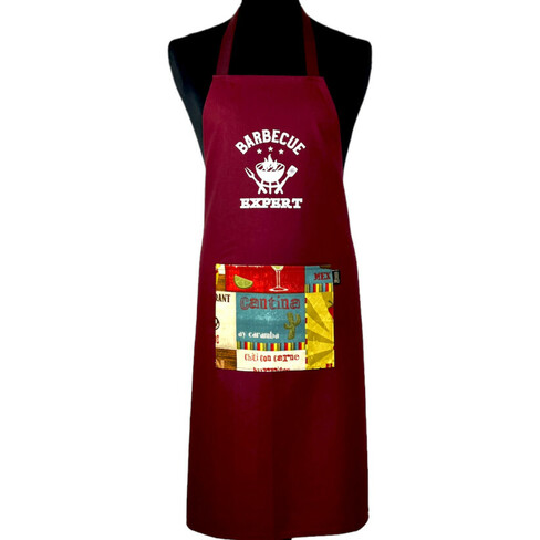 Tablier de cuisine pour homme, "barbecue expert" de couleur bordeaux. Sur le thème du barbecue, ce tablier sera parfait pour les pros du barbecue ou de la plancha.