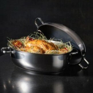 - Le plat à rôtir et le couvercle ont une base encapsulée avec un noyau en aluminium pour une répartition et une rétention uniformes de la chaleur.