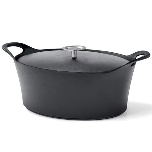 Cocotte ovale de diamètre 35cm. Fonte de fer émaillée de couleur noire avec couvercle. Contenance 6 litres pour 8 à 10 convives.