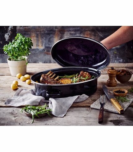 - Acier émaillé avec revêtement émail: excellente conductivité de la chaleur pour rôtir uniformément.