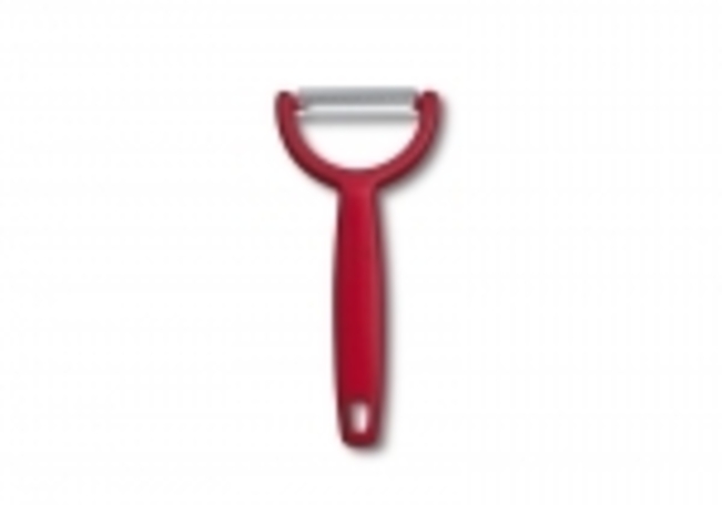 Pèle-tomates (éplucheur universel) VICTORINOX « YPSO », manche « Y » polypropylène, lame à double denture intérieure (convient aussi pour kiwis, pêches, poivrons...).