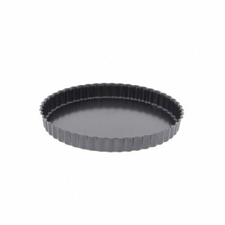 Moule à tarte cannelé en acier revêtu, bord droit et fond fixe : un design authentique.