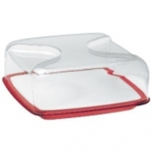 Une cloche à fromage carrée avec plateau, planche à découper en porcelaine et cloche. L'épaisseur du plastique utilisé donne une impression de solidité et de qualité tout en améliorant les caractéristiques de résistance.